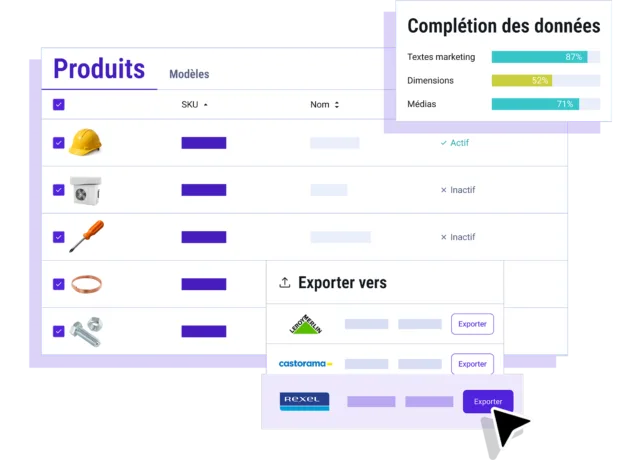 Daiteo aide les industriels à reprendre le contrôle de leurs ventes B2B. C’est un outil unique pour gérer et diffuser les données produits (informations marketing, données logistiques, médias, tarifs) vers tous les canaux de vente : réseaux de distribution professionnelle, marketplaces, portails distributeurs. Et ce, via tous les formats requis : Excel, PDF, FAB-DIS, ETIM et bien d’autres.