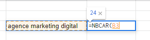 La création d’annonce sur Google Ads est souvent une tâche complexe. En effet, la limitation des caractères rend parfois difficile d’exprimer l’idée que l’on veut en seulement 30 caractères pour un titre ou 90 caractères pour une description.Avoir une vision en direct sur le nombre de caractères des wordings permet d’ajuster plus facilement et plus rapidement.C’est possible grâce à la formule Excel pour Google Ads =NBCAR qui permet d’afficher dans une cellule le nombre de caractères dans une autre cellule.