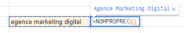 Quand on crée une annonce sur Google Ads, l’objectif est de la rendre attractive visuellement et de donner envie de cliquer à l’utilisateur. Une bonne pratique de la création d’annonces sur Google Ads est de mettre une majuscule au début des mots importants de votre wording. Cela permet de mettre les termes clés de vos annonces en avant et de les rendre plus facilement lisibles.La formule Excel =NOMPROPRE permet de faire ça rapidement pour un grand nombre de wording.