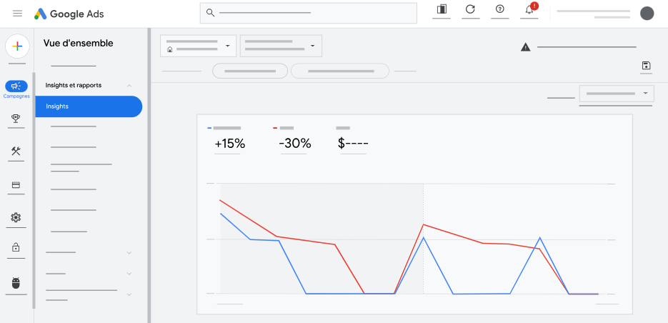 Voici l’emplacement de la page “insight” sur Google Ads :