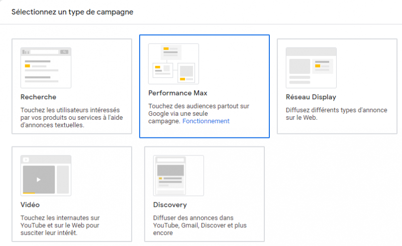 Performance Max se situe dans la continuité de toutes les actions qui ont été prises par Google ces dernières années sur Google Ads.En effet, Google vire vers une automatisation de plus en plus importante de toutes ses campagnes. C’était déjà le cas avec l’arrivée des campagnes Smart Shopping, Smart Display, et le lancement de nouvelles stratégies d’enchères.Performance Max est en quelque sorte “l’aboutissement” de cette automatisation puisqu’elle combine l’optimisation intelligente des wordings, des visuels, des enchères, des ciblages et de l’attribution pour maximiser l’efficacité de vos investissements publicitaires.Ces campagnes sont diffusées sur l’intégralité du réseau Google (Search, Display, Discover, Gmail, Maps, YouTube).