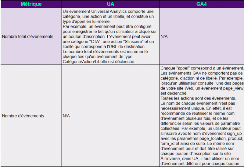 Le modèle de données des événements est fondamentalement différent dans les propriétés Universal Analytics et les propriétés Google Analytics 4.
